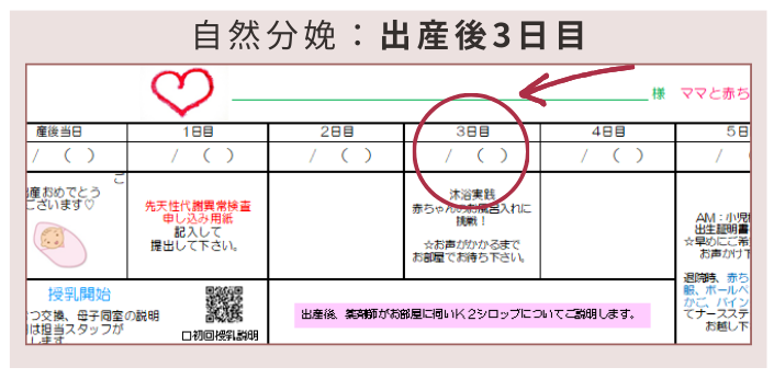 自然分娩 …出産後3日目 例)1/1出産→1/4ディナー